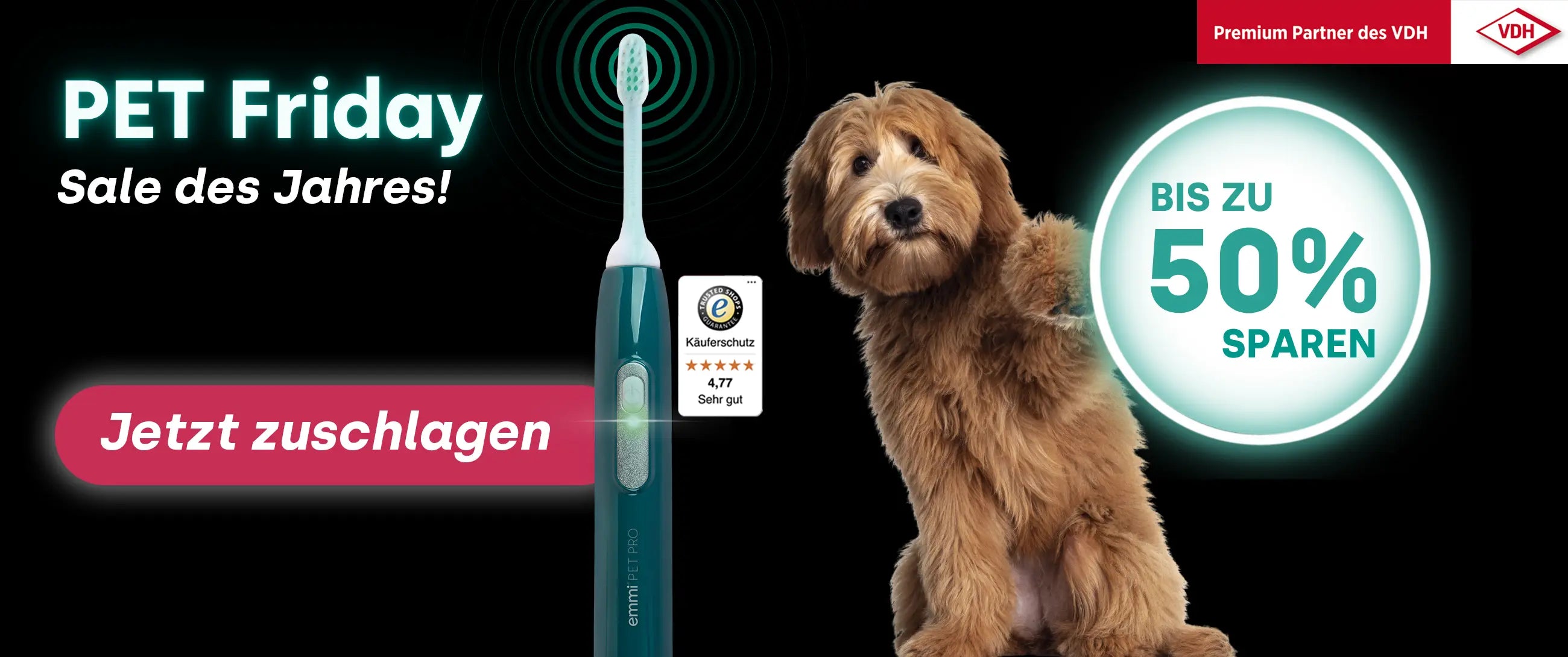 Allerdings ersetzt der Einsatz der Ultraschall-Zahnbürste nicht den Tierarztbesuch. Zahnerkrankungen sollten fachmännisch behandelt werden, damit Dein Hund schmerzfrei ist und der Zahnreinigung mit einer emmi-pet Hundezahnbürste nichts mehr im Weg steht. Wir empfehlen unsere emmi-pet für die Prophylaxe bzw. für die Prävention.