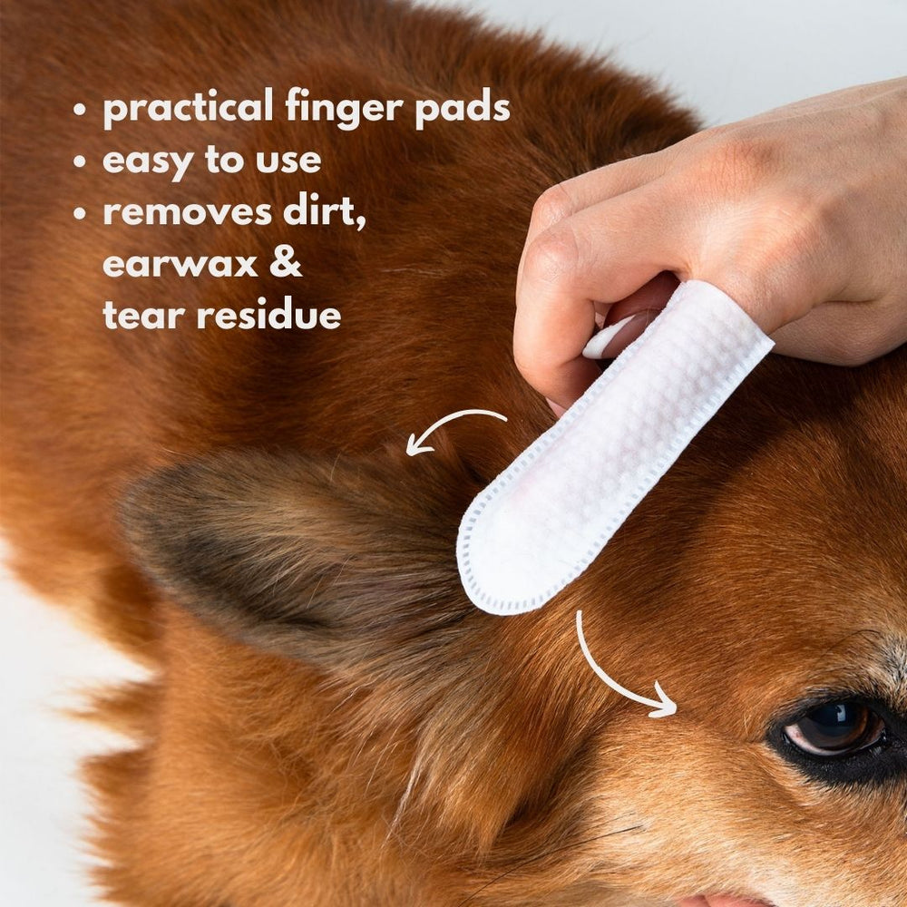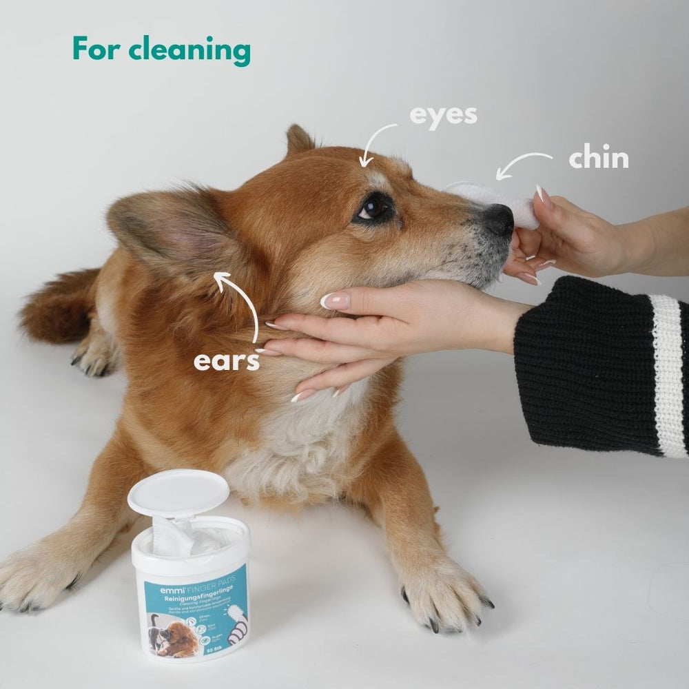 Discover our innovative emmi-pet Pet cleaning finger cots specially designed to make ear, chin and eye care easier. The high-quality finger cots made of soft non-woven fabric effectively clean dirt and help your beloved pet stay clean. Sensitive areas are thoroughly cleaned thanks to the soft surface of the cleaning cloths.
