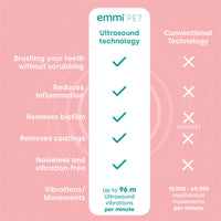 An ultrasonic dog toothbrush, such as the emmi-pet PRO, represents an outstanding innovation in dog care. Its numerous advantages clearly distinguish it from conventional toothbrushes and offer you an ideal solution for your dog's dental hygiene.