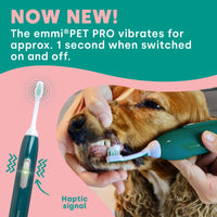 Experience the next generation of 100% ultrasonic dog toothbrushes with the new emmi-pet PRO – now with innovative features that make dental care for your pet even easier and more effective. The optimized technology ensures maximum cleaning performance while your four-legged friend continues to enjoy a stress-free, gentle experience.