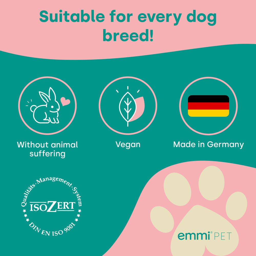 Discover the natural coat care set from emmi-PET – a perfectly coordinated care series consisting of gentle Moisture Natural dog shampoo , detangling Anti-Tangle Natural coat spray , and regenerating 2-in-1 Natural paw balm . This set offers everything you need for healthy, shiny coat care and protected paws – completely natural and without compromise.