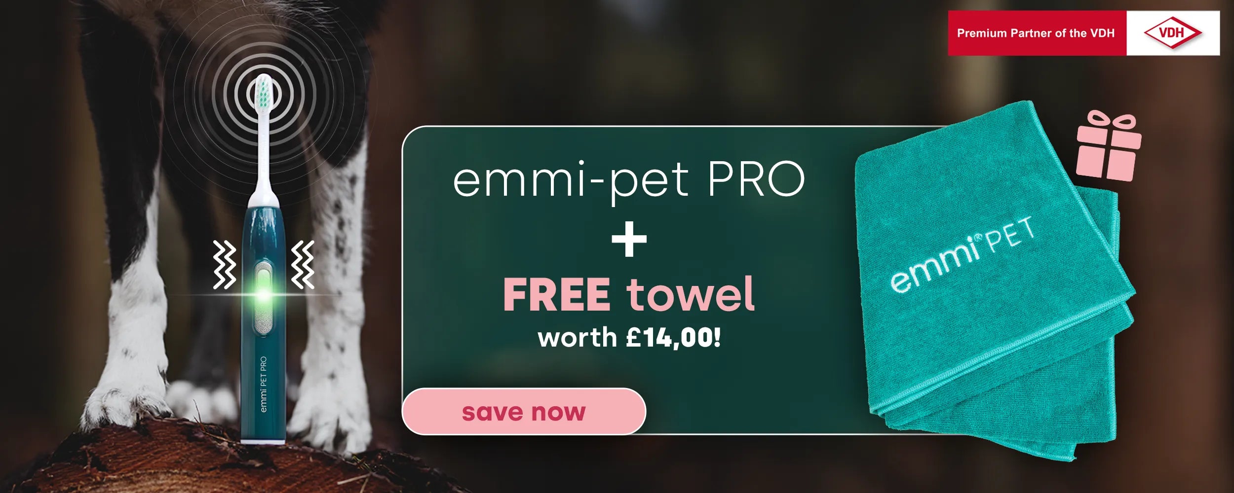 Una flora oral saludable puede incluso extender la vida de su amigo de cuatro deseos.Con la rutina de cuidado dental correcto y el cepillo de dientes ultrasónico PET EMMI para animales, puede prevenir efectivamente tártaro, decoloración de los dientes e infecciones de las encías.