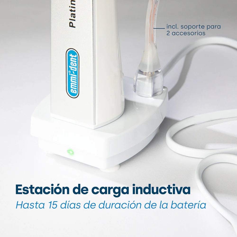 Gracias a la tecnología de ultrasonidos sin abrasión, emmi-dent PlatinumCAM es especialmente adecuado para personas con encías sensibles, implantes, aparatos dentales o enfermedades dentales como la periodontitis. Las suaves vibraciones limpian delicadamente sin irritar los dientes ni las encías. Esto mantendrá tus dientes sanos sin dañar el esmalte.