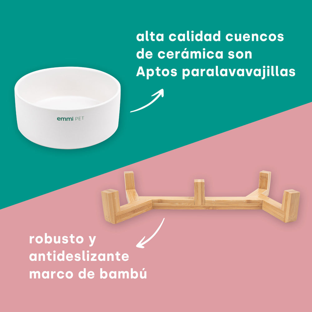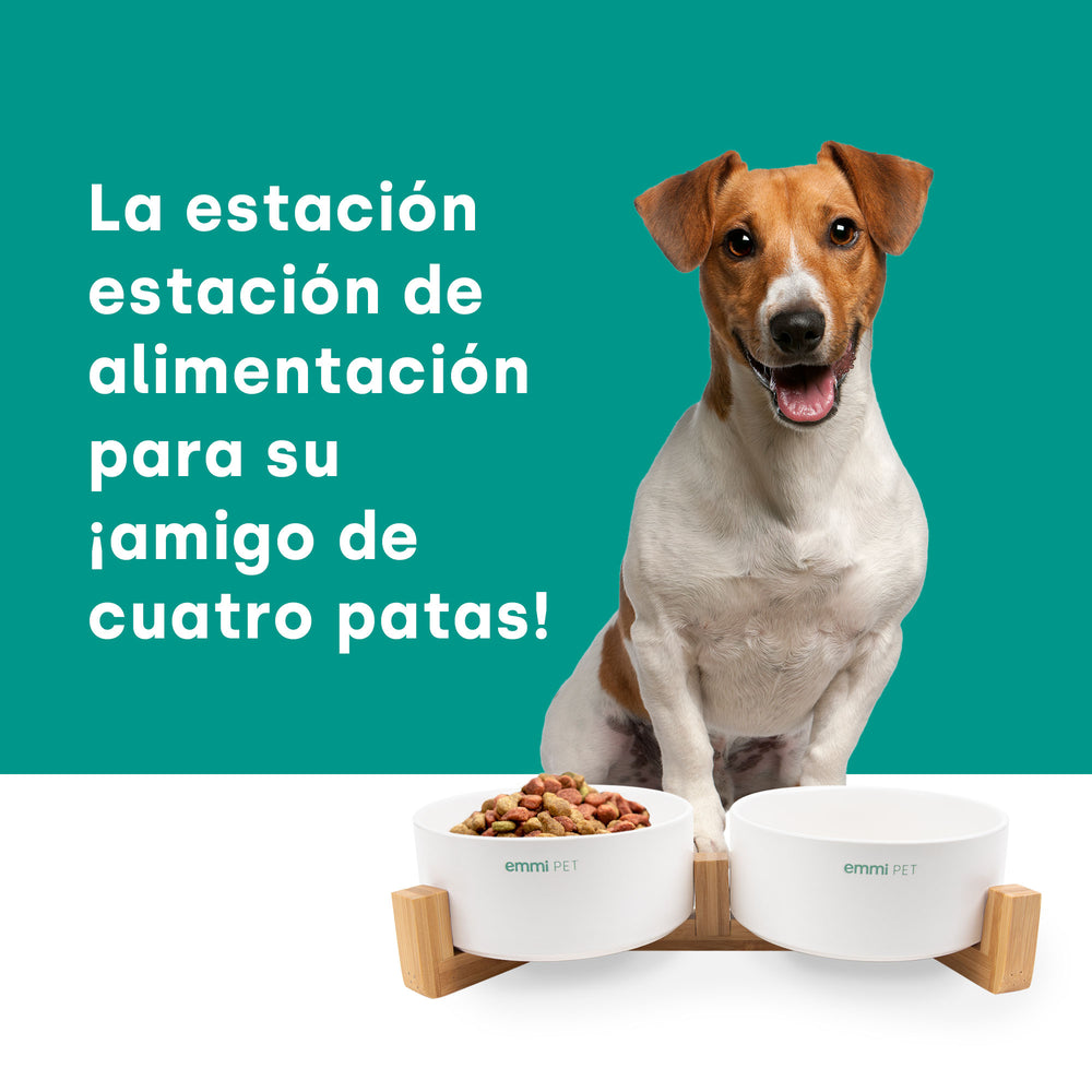 El emmi-mascota Este cuenco para agua y comida en uno está hecho de cerámica de alta calidad y ofrece una solución práctica y que ahorra espacio para alimentar a su perro. Para soportar el uso diario, es muy robusto y garantiza una larga vida útil. El agradable peso de los dos cuencos y el marco de madera a juego proporcionan estabilidad y garantizan el disfrute de la ración de comida diaria. El suave La superficie de los cuencos para perros facilita el cuidado y la higiene diarios. Se pueden lavar a mano o limpiar en el lavavajillas. Gracias a la base antideslizante, los cuencos de cerámica se mantienen estables en el suelo y evitan que se vuelquen. Esto minimiza los derrames y garantiza un ambiente limpio. El marco de madera está recubierto con barniz para protegerlo del agua. La barra de alimentación para perros pequeños y grandes atrae todas las miradas para cualquier dueño de mascota gracias a su aspecto moderno.