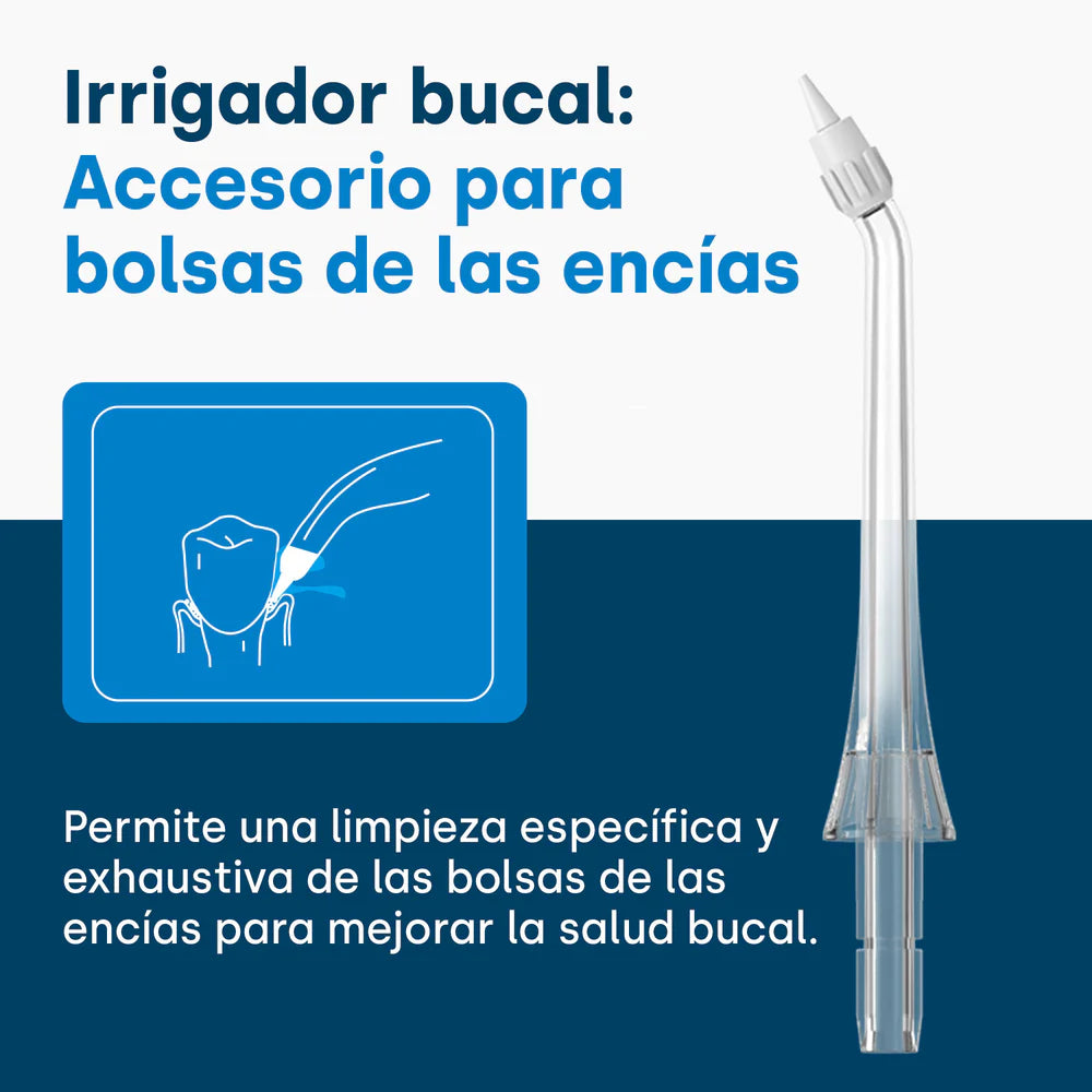 Los accesorios de boquilla especiales del irrigador bucal se pueden utilizar para limpiar las bolsas periodontales. Ayudan a eliminar bacterias de zonas más profundas de las encías.
