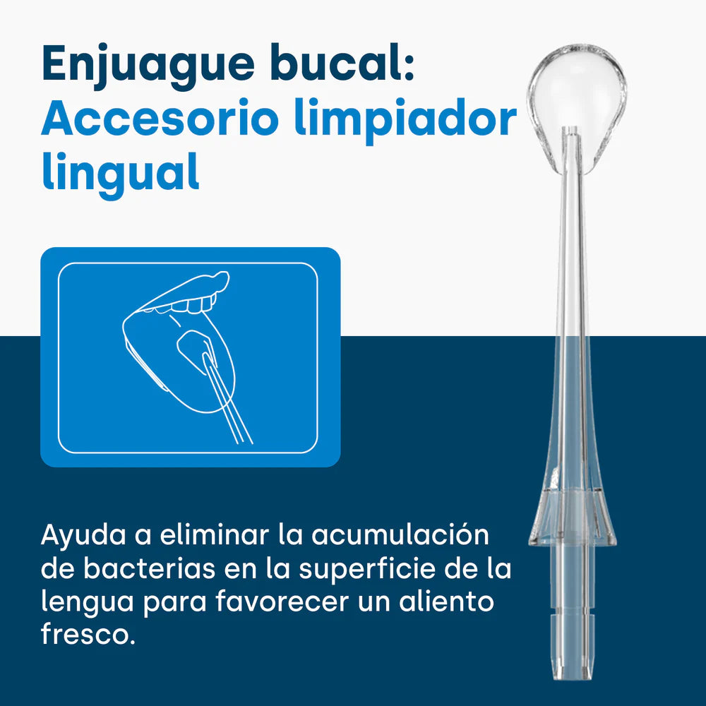 Se puede utilizar un accesorio de boquilla especial para limpiar la superficie de la lengua y combatir así el mal aliento.