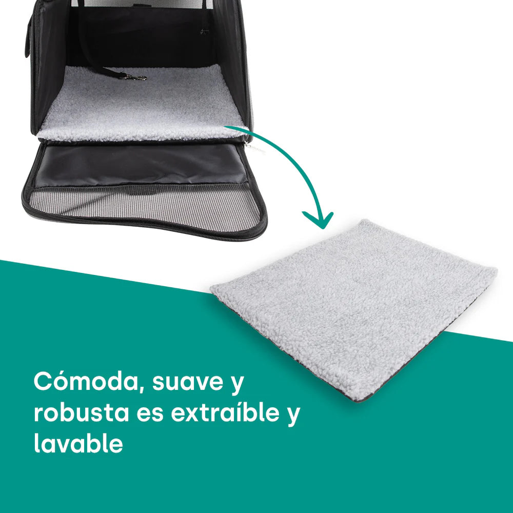 - Capaz de viajar: Gracias a sus dimensiones (41,5 x 32 x 30), la caja de transporte también es adecuada para viajar en avión. Esto puede variar dependiendo de la aerolínea.