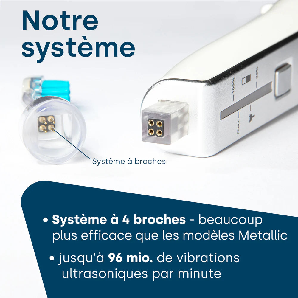 Les ondes ultrasonores pénètrent profondément dans les espaces entre les dents et la gencive. Ils y dissolvent les bactéries et la plaque dentaire, ce qui prévient efficacement la carie dentaire, la gingivite et d'autres maladies dentaires. Pour des résultats particulièrement approfondis, le dentifrice à ultrasons emmi-dent spécialement développé est utilisé. Les microbulles incluses renforcent considérablement l'effet des ultrasons.