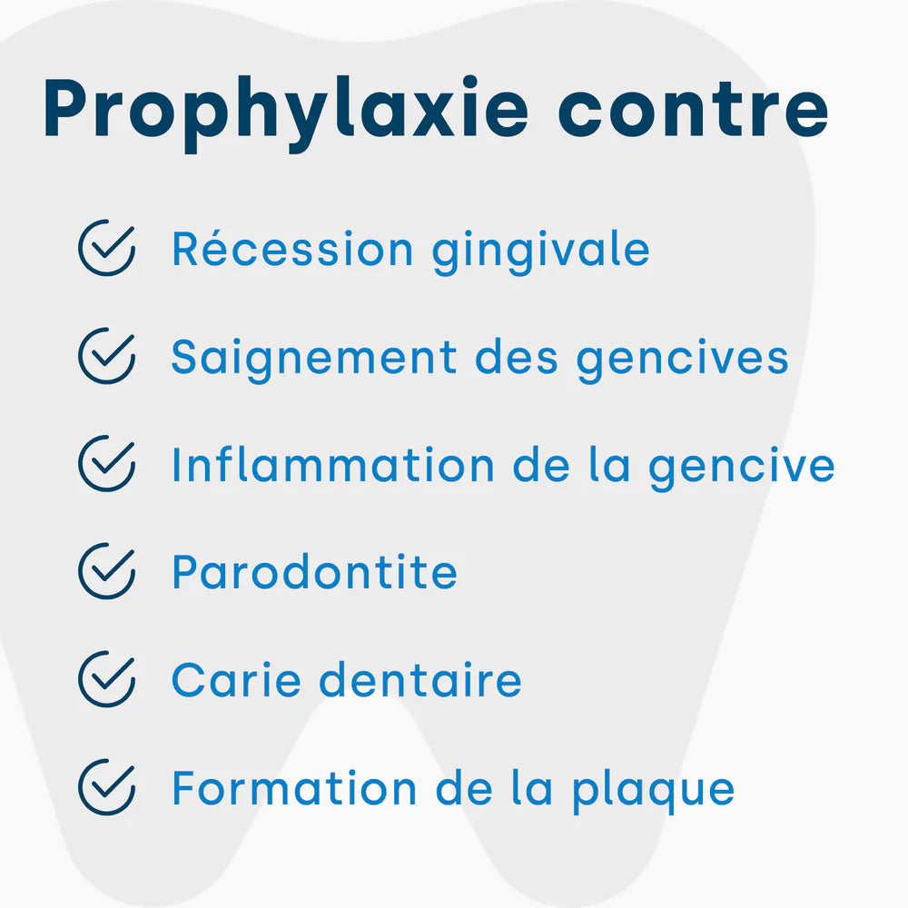 Notre dentifrice en combinaison avec le brosse à dents à ultrasons nettoie vos dents non seulement en profondeur mais aussi en douceur. Profitez de la sensation de dents parfaitement propres et d'une fraîcheur longue durée tout au long de la journée.