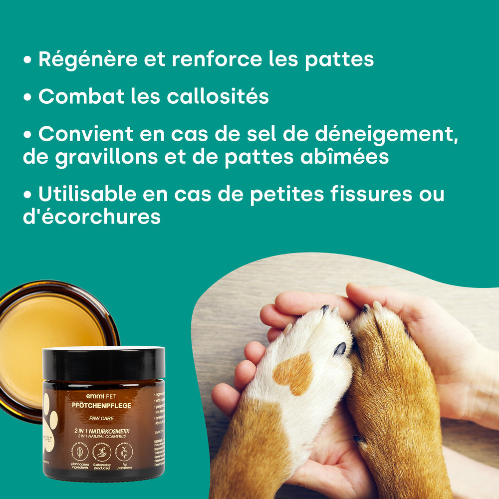 - Pfötchenpflege: auf saubere, trockene Pfoten auftragen und sanft einmassieren.