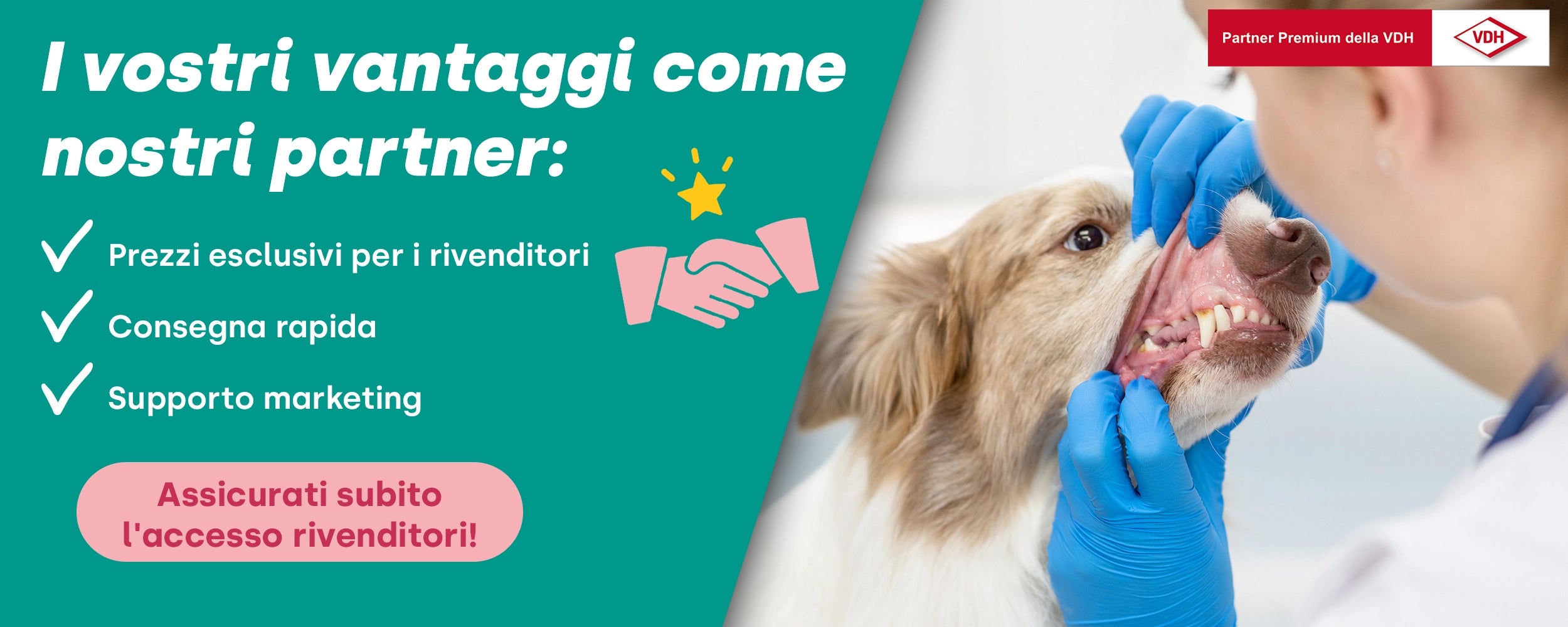 Una flora orale priva di infiammazioni contribuisce alla salute generale, anche negli animali! Una regolare cura dei denti riduce la proliferazione dei batteri che potrebbero danneggiare il cuore, il fegato e i reni. Ecco come il tuo amico a quattro zampe si mantiene sano e in forma! Perfetto per cani da esposizione e sportivi.