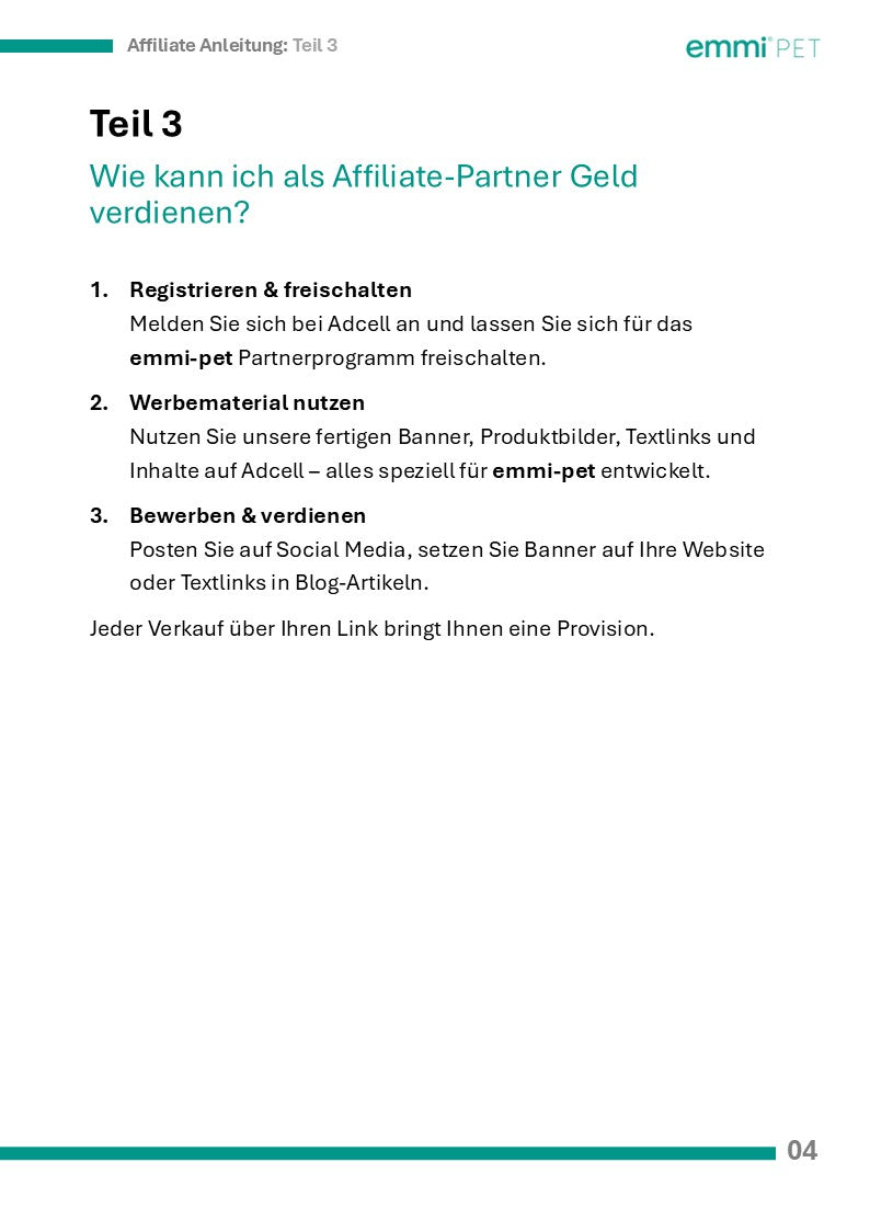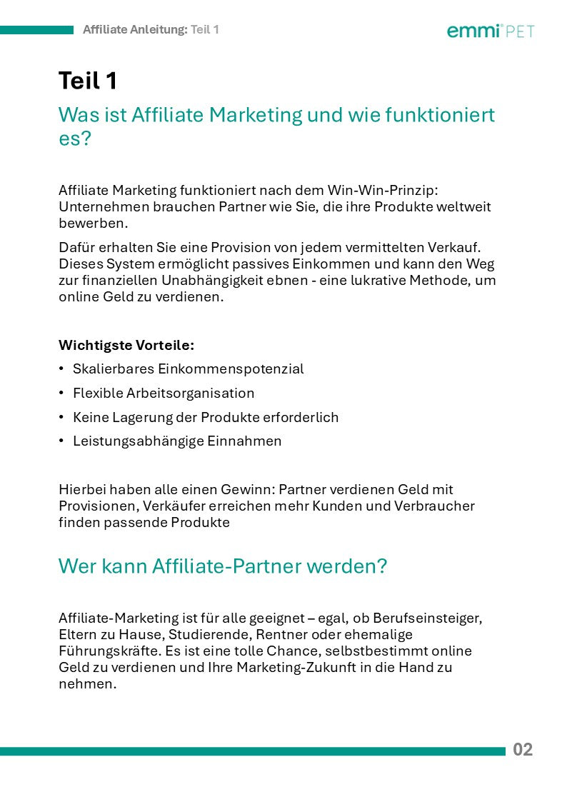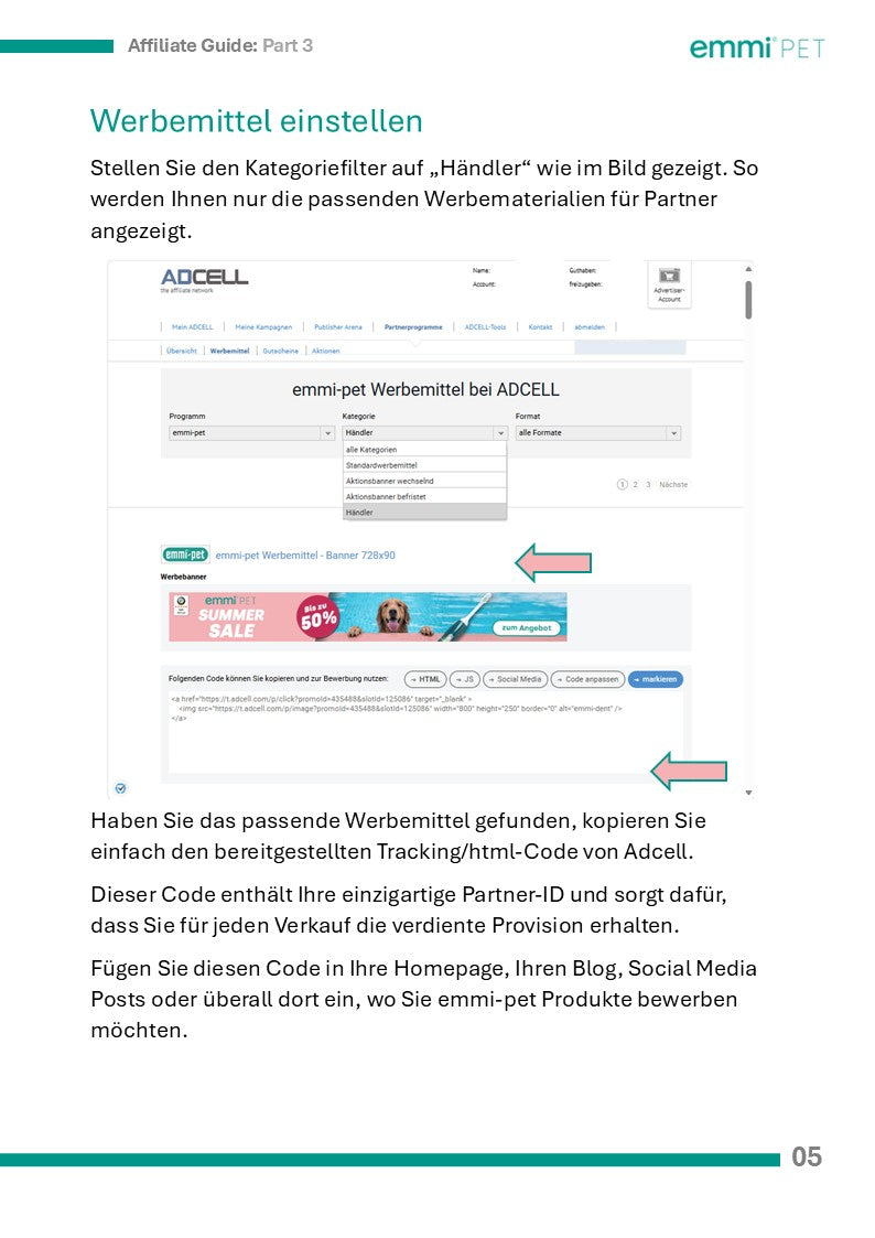 I nostri PDF con le istruzioni per gli affiliati spiegano cos'è il marketing di affiliazione e come puoi integrare con successo i tuoi materiali pubblicitari nella tua homepage, anche senza conoscenze pregresse.