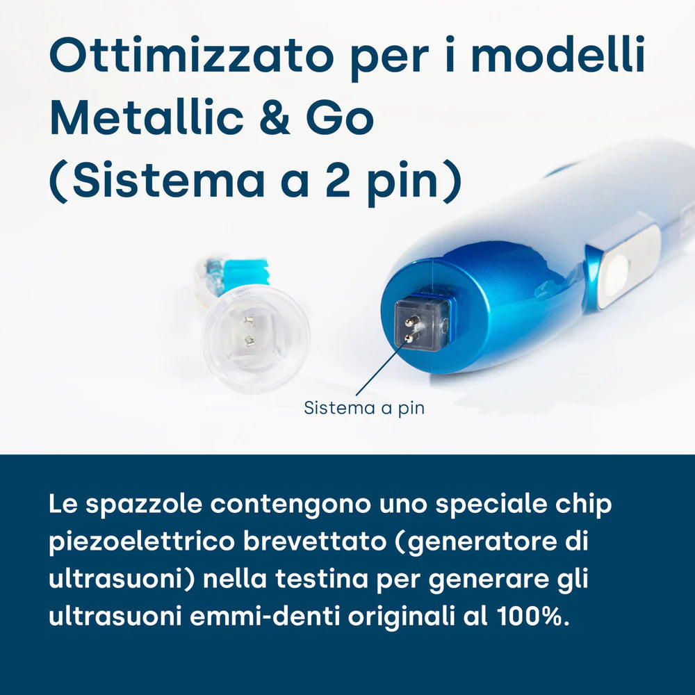 Si prega di notare che la testina della spazzola ad ultrasuoni del emmi-dent Metallic and Go esclusivamente per la pulizia dei denti e l'igiene orale con il modello emmi-dent Metallic e ANDARE può essere utilizzato.