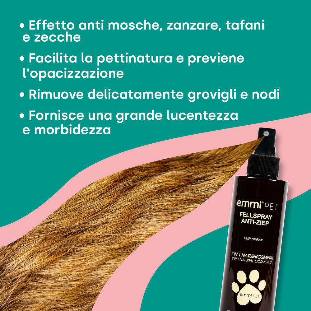 • Spray per manto: spruzzare sul manto asciutto o leggermente umido, non risciacquare.