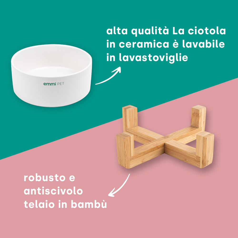 ciotola per acqua e cibo con telaio in bambù