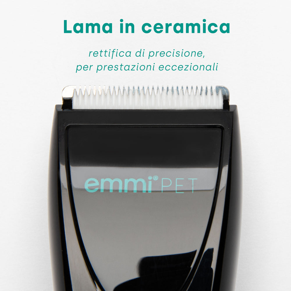 Una toelettatura adeguata è essenziale per la salute e il benessere del tuo animale domestico. Con la tosatrice per cani emmi-pet offriamo una soluzione professionale per la cura del pelo, studiata appositamente per le esigenze di cani e gatti. La bassa conduttività termica delle lame in ceramica garantisce la protezione della pelle del vostro amico a quattro zampe. Ciò è particolarmente importante per gli animali sensibili a determinati materiali. Il design arrotondato della testina di taglio riduce inoltre al minimo il rischio di graffi e irritazioni cutanee.