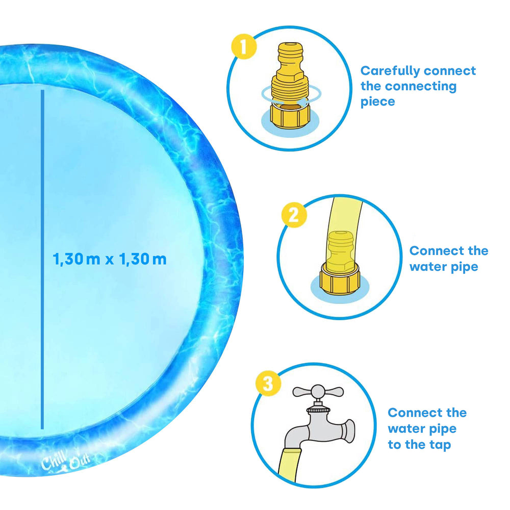 Questo esclusivo tappeto da gioco acquatico si collega semplicemente al tubo flessibile del giardino e spruzza numerosi getti d'acqua fino a un'altezza di 1 metro. Il tuo cane adorerà giocare e sguazzare sul tappetino e tu adorerai renderlo felice.