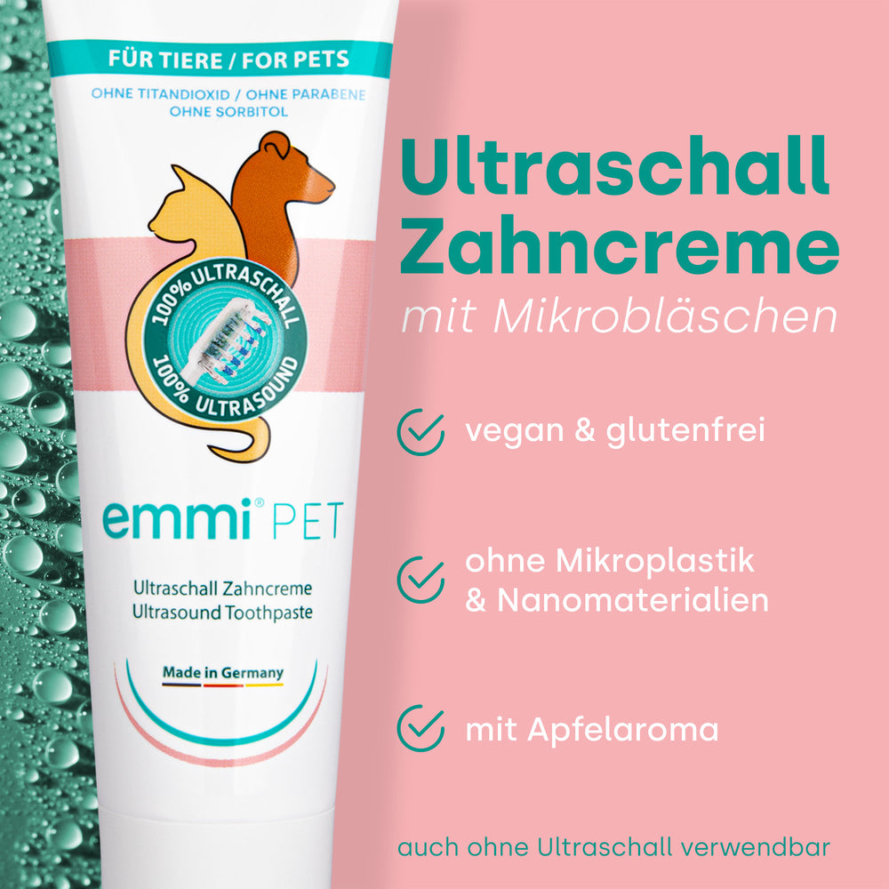 Diese Art von Zahnbürste eignet sich für Hunde aller Größen und Rassen und bietet eine schmerzfreie, angenehme Reinigungserfahrung, die besonders für jüngere, ältere oder empfindliche Hunde wichtig ist. Wenn du dich für eine Ultraschallzahnbürste wie die emmi-pet 2.0 entscheidest, investierst du in die optimale Mundgesundheit deines Hundes. Diese Art von Hundezahnbürste kombiniert innovative Technologie mit Benutzerfreundlichkeit und wird zu einem unverzichtbaren Bestandteil der Gesundheitsroutine deines Hundes.