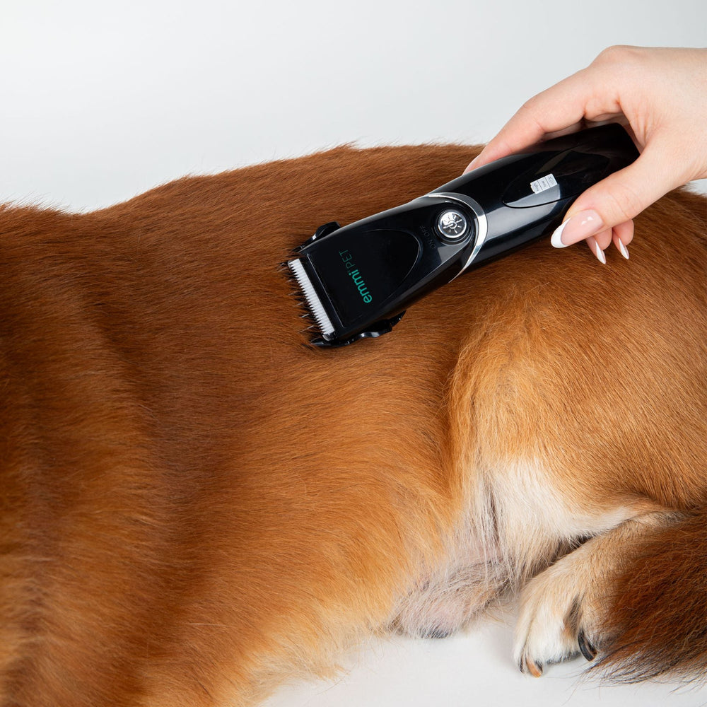 Vorbürsten, Scheren und Pflegen, so einfach ist die Anwendung unserer Schermaschine. Bürste das Fell deines Haustieres vor dem Scheren gründlich durch, um Knoten und Verfilzungen zu entfernen. Das erleichtert die Schur und sorgt für ein gleichmäßiges Ergebnis. Danach führst du die Schermaschine langsam und gleichmäßig über das Fell. Der Haartrimmer verfügt über Aufsteckkämme von 3/6 mm und 9/12 mm, die eine präzise Anpassung und Feinarbeiten je nach gewünschter Schnittlänge ermöglichen. Nach der Schur nutzt du ein mildes Shampoo, um das Fell nach der Schur zu pflegen und Hautirritationen zu vermeiden.