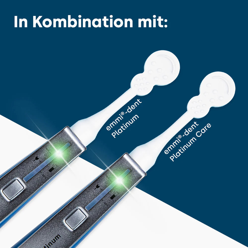 Bitte beachten Sie, dass die Ultraschall Aufsteckbürste der emmi-dent Platinum ausschließlich für die Zahnreinigung und Mundhygiene mit dem Premium Modell emmi-dent Platinum verwendet werden können.