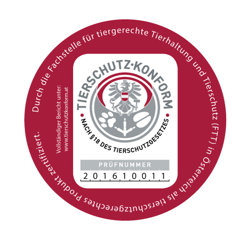 Produkte, die das Tierschutzkennzeichen tragen, entsprechen garantiert den österreichischen Tierschutzbestimmungen.