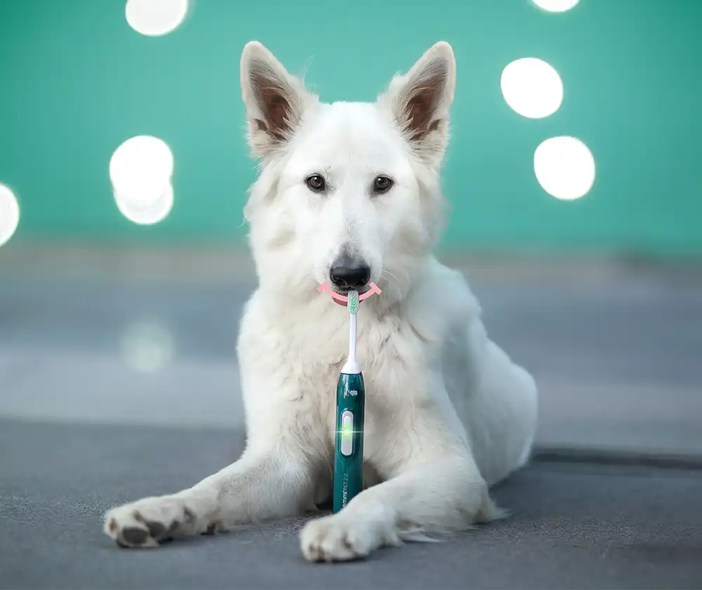 Die optimale Zahnpflege beim Hund beginnt im besten Falle bereits in jungem Alter: Um Zahnstein beim Hund effektiv vorzubeugen, empfiehlt sich eine regelmäßige und gewissenhafte Zahnpflege. Auch wenn Welpen meistens strahlend weiße Zähne vorweisen, ist eine spielerische Gewöhnung an die Zahnpflege bereits im Welpenalter sinnvoll. Durch ihre lautlose und vibrationslose Funktionsweise eignet sich die emmi-pet Ultraschall-Zahnbürste hierfür besonders gut.